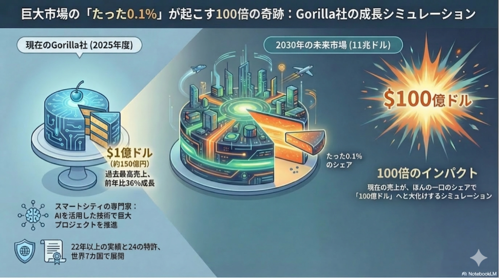 現在のGorilla社の売上は約1億ドルなので、なんと**「売上が現在の100倍に大爆発する」**計算になります。