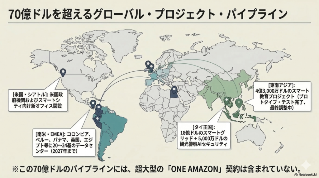 • 具体的には、アフリカ最大の「ダンゴート製油所(ナイジェリア)」の統合コマンドセンターや、マレーシア国営石油会社**「ペトロナス」、さらにはインドの国家中枢であるニューデリーの新国会議事堂エリア(Central Vista)**などです。