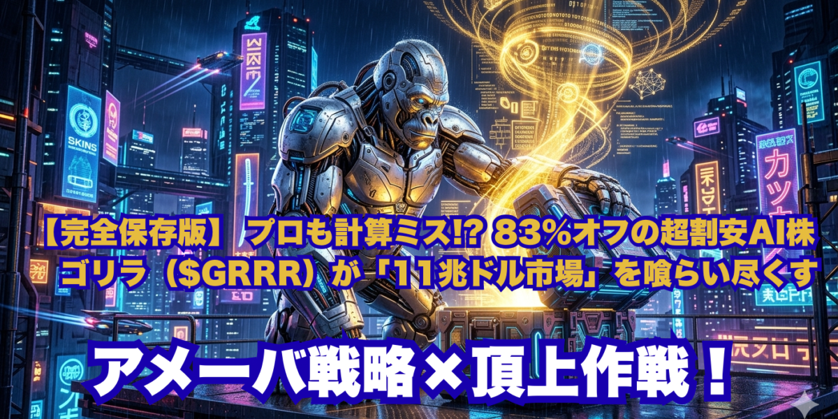 【完全保存版】プロも計算ミス!? 83%オフの超割安AI株・ゴリラ($GRRR)が「11兆ドル市場」を喰らい尽くす頂上作戦×アメーバ戦略